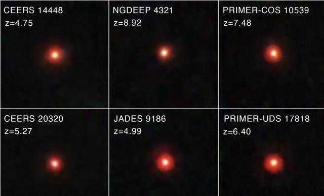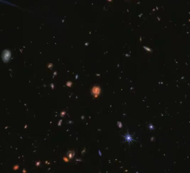 除了这些“早熟星系”,韦伯望远镜还在这张照片里,拍到了另一个让科学家集体懵圈的东西,上千个神秘的“小红点”,它们体积极小、亮度惊人、颜色血红,既不是恒星,也不是普通星系,连被尘埃包裹的黑洞都不是,人类已知的所有天体分类,没有一个能套得上它,堪称宇宙中的“未知物种”。